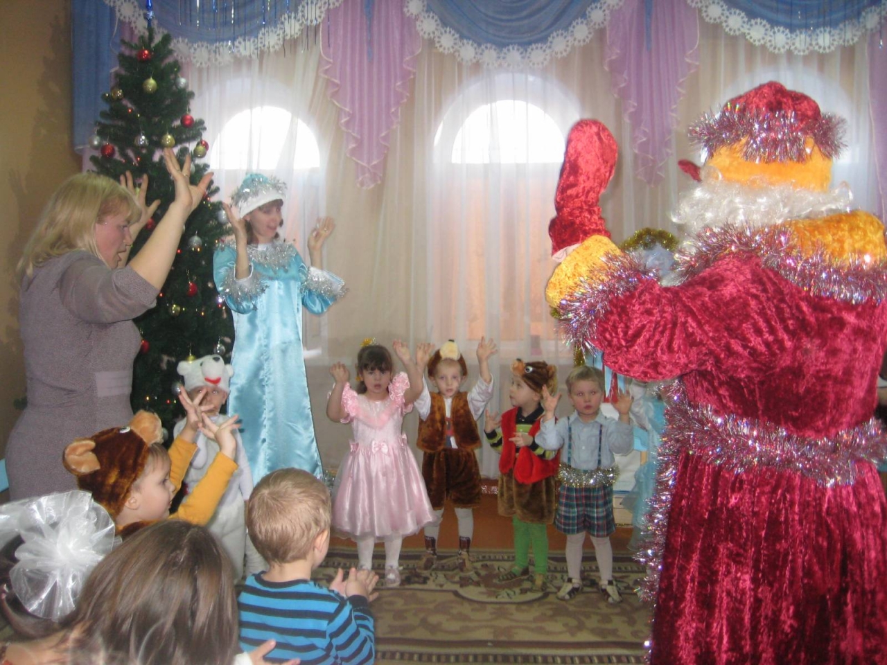 25 – 26 декабря 2014 года в нашем детском саду прошли 4 незабываемых встречи с Дедом Морозом, Снегурочкой, Старухой Шапокляк, Феей, Бабой Ягой, Снеговиком, Лисой и другими сказочными героями.