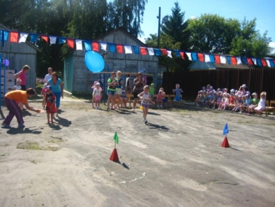 На спортивной площадке, совместно с родителями, был проведен спортивный праздник «Веселые старты». В быстроте, силе и ловкости соревновались команды «Ловкачи» и «Силачи». Весело, задорно обе команды прошли эстафеты. Кроме медалей и призов дети, и взрослые получили большой заряд энергии и отличного настроения!