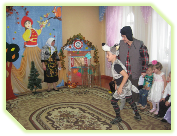 Даже страшный волк, появившийся неожиданно, не смог испортить ребятам настроения. Но дедушка с бабушкой не дали в обиду ребят и прогнали волка с праздника. В заключение праздника бабушка угостила детей вкусными, ароматными пирогами с разной начинкой и пригласила всех на чаепитие.