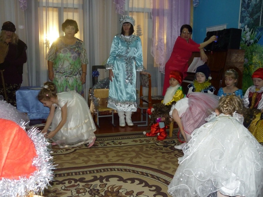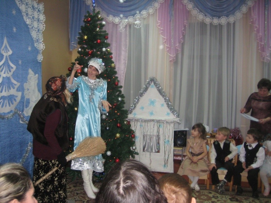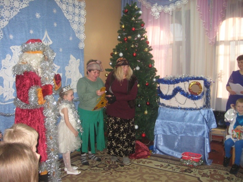 С 28 по 30 декабря были организованы 4 незабываемых встречи с Дедом Морозом, Снегурочкой, Бабой Ягой, Чертенком, Снеговиком и другими сказочными героями. Большинство утренников строилось на том, что нечистая сила хотела помешать встрече Нового года, но в конце концов добро победило зло и Баба – Яга, Чертенок и Кикимора, творившие пакости тысячи лет, стали хорошими.