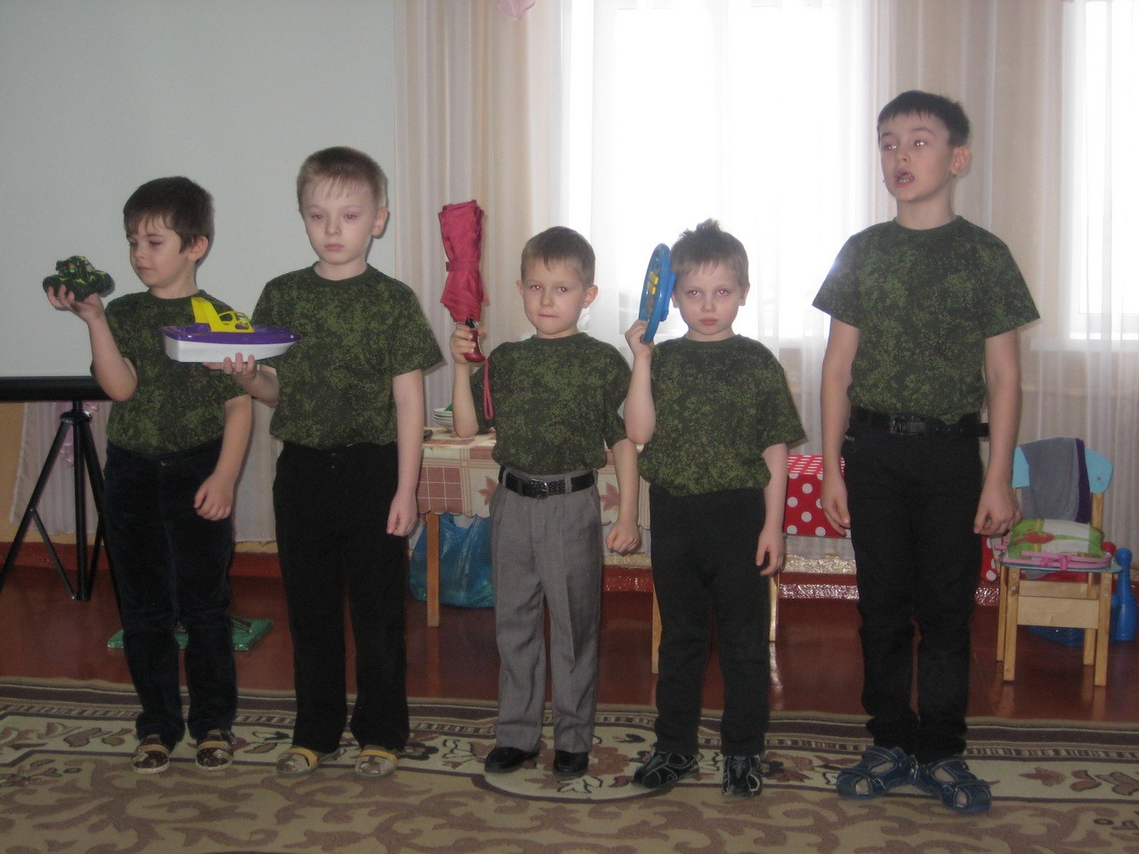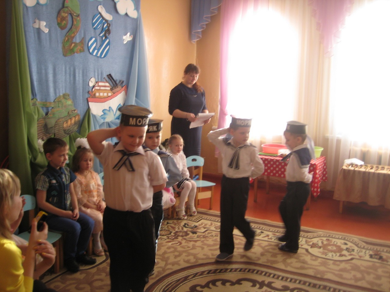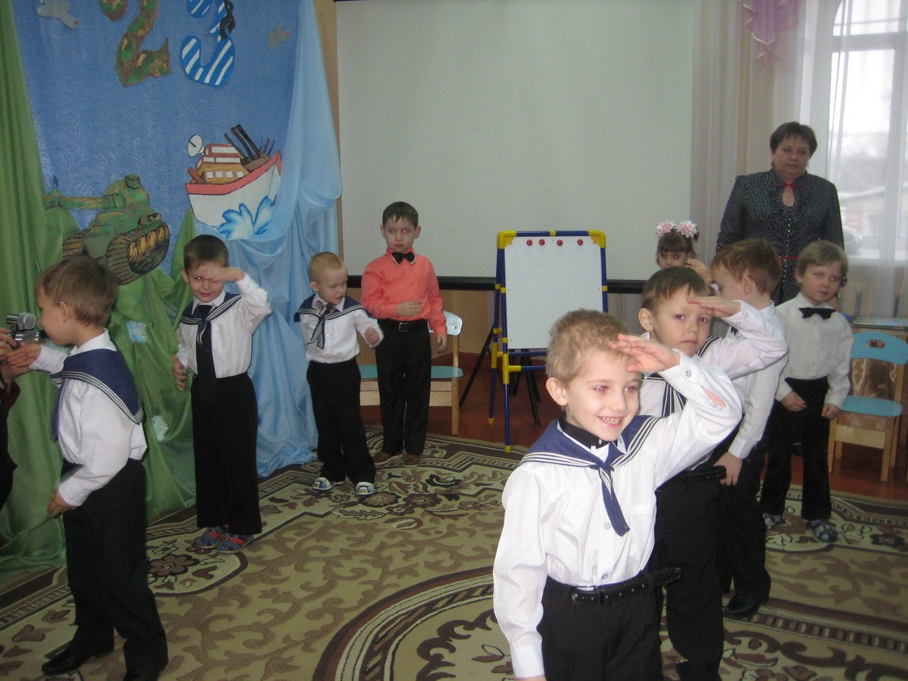 «Мы, как только подрастем, в Армию служить пойдем!» - под таким девизом выступили воспитанники подготовительной к школе группы. Нашим отважным ребятам не только любое задание по плечу, они еще умеют отлично петь, рассказывать стихотворения, играть и задорно танцевать. Ребята доказали, что среди них нет такого вояки, Вовы Сидорова, как в сценке.