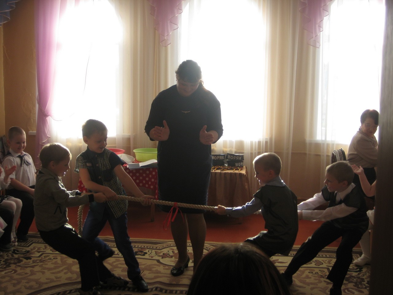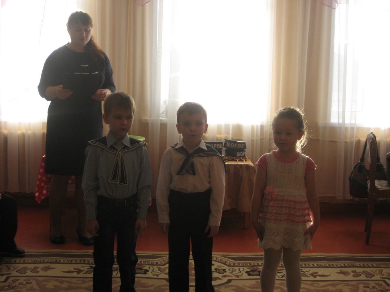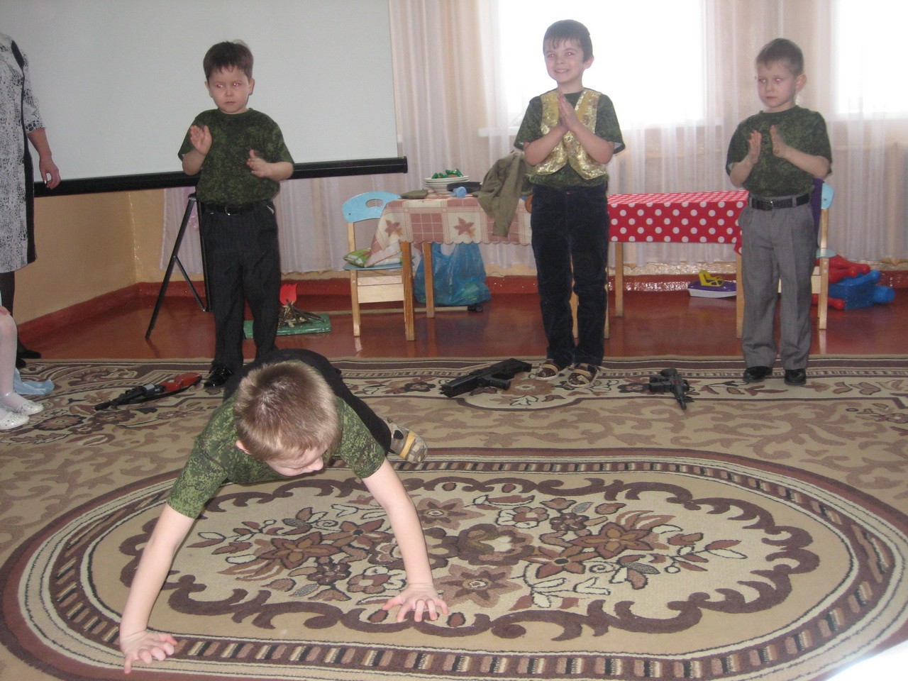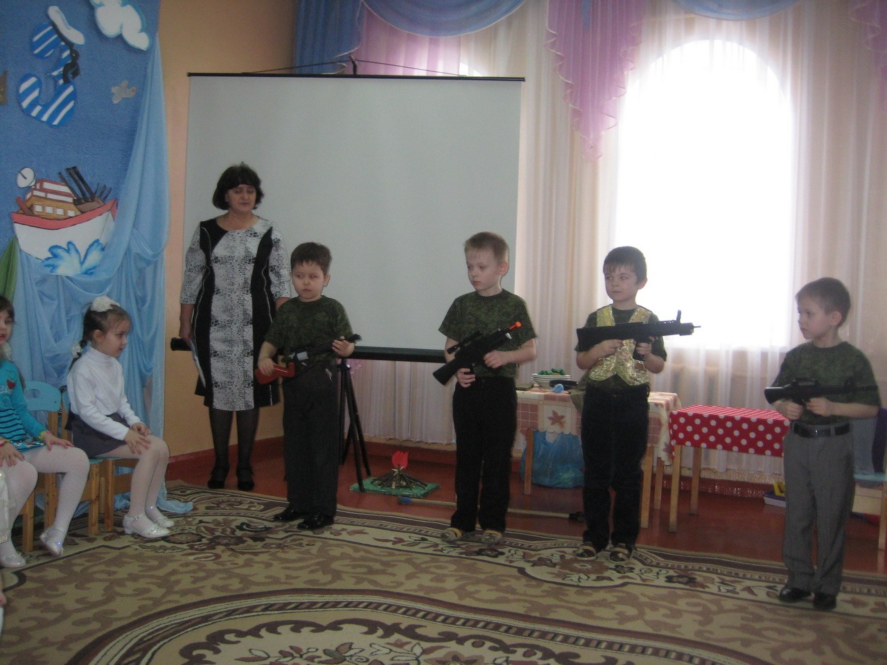 «Мы, как только подрастем, в Армию служить пойдем!» - под таким девизом выступили воспитанники подготовительной к школе группы. Нашим отважным ребятам не только любое задание по плечу, они еще умеют отлично петь, рассказывать стихотворения, играть и задорно танцевать. Ребята доказали, что среди них нет такого вояки, Вовы Сидорова, как в сценке.