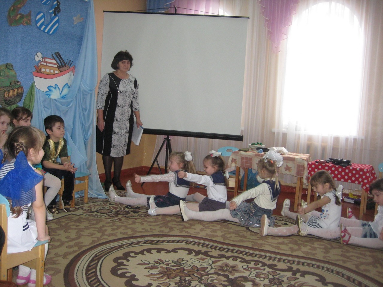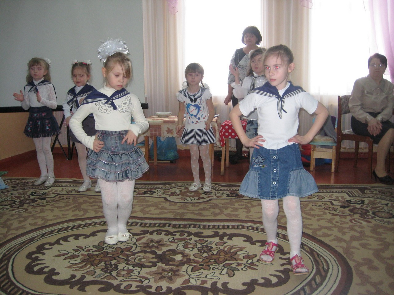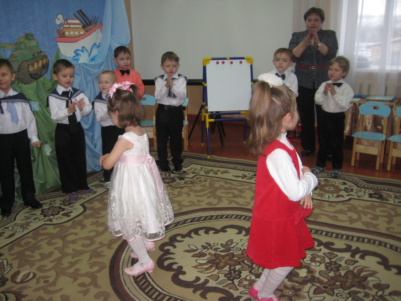 В исполнении мальчиков папы и мамы увидели «Армейский танец», ну, а девчонки показали класс при исполнении «Морячки».
