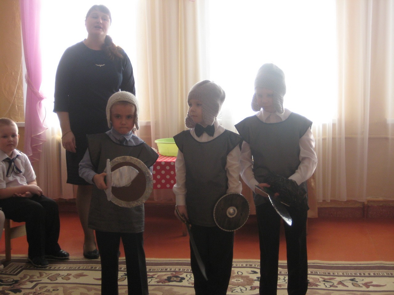 «Богатырские состязания» были организованы в старшей группе. Ребята с удовольствием выполняли боевые задания, преодолевали полосу препятствий, показывали свою смекалку, удаль и богатырскую силу. Мальчишки без труда освободили «Василис прекрасных», а в благодарность получили шуточный танец с ложками. Стихи, песни, задорные танцы никого не оставили равнодушными.