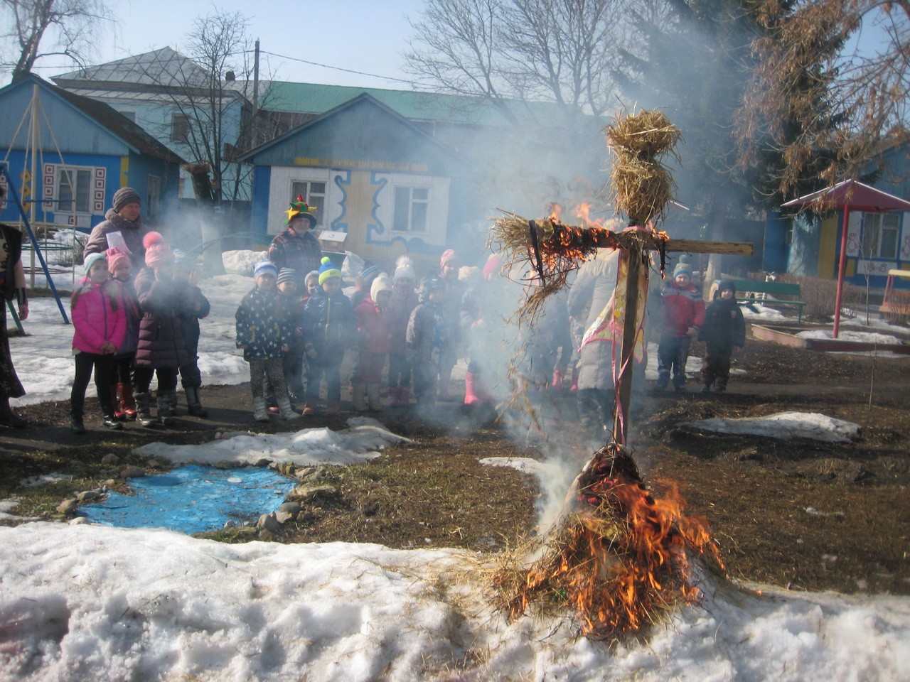 Прежде чем сжечь чучело Масленицы дети и взрослые спели ей прощальные песни. Ребята с восторгом наблюдали, как горит чучело Масленицы. В заключение праздника Весна угостила всех ароматными блинами.
