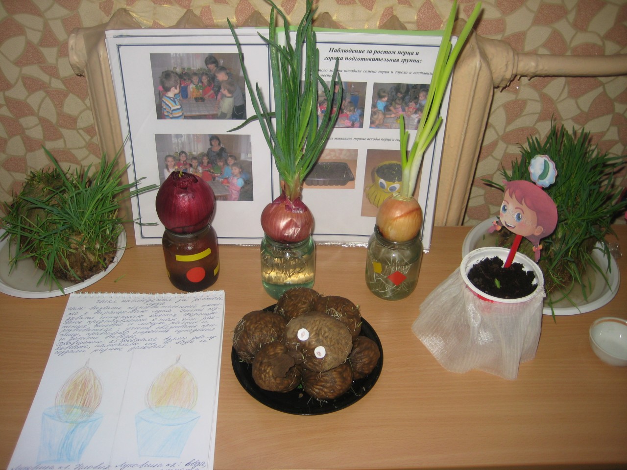 Каждая группа подготовила оригинально оформленные огороды. Педагоги проявили фантазию, творчество при оформлении посадок: вторая младшая группа эстетично оформили «Веселую полянку», в средней группе во всем многообразии представлен «Урожай на даче», в старшей группе «трудолюбивые хозяева» показали свои весенние посевы, в подготовительной к школе группе порадовала своим разнообразием посадок, всходов «Красочная деревенька». Активное участие в оформлении, посеве и уходе за «огородом», приняли участие дети. Воспитатели подготовительной к школе группе представили не только зарисовки наблюдений за ростом лука, посаженного в трех разных условиях, но и оформили альбом с фотографиями, ходом наблюдений и выводами, с подборкой стихов, загадок, пословиц по теме.