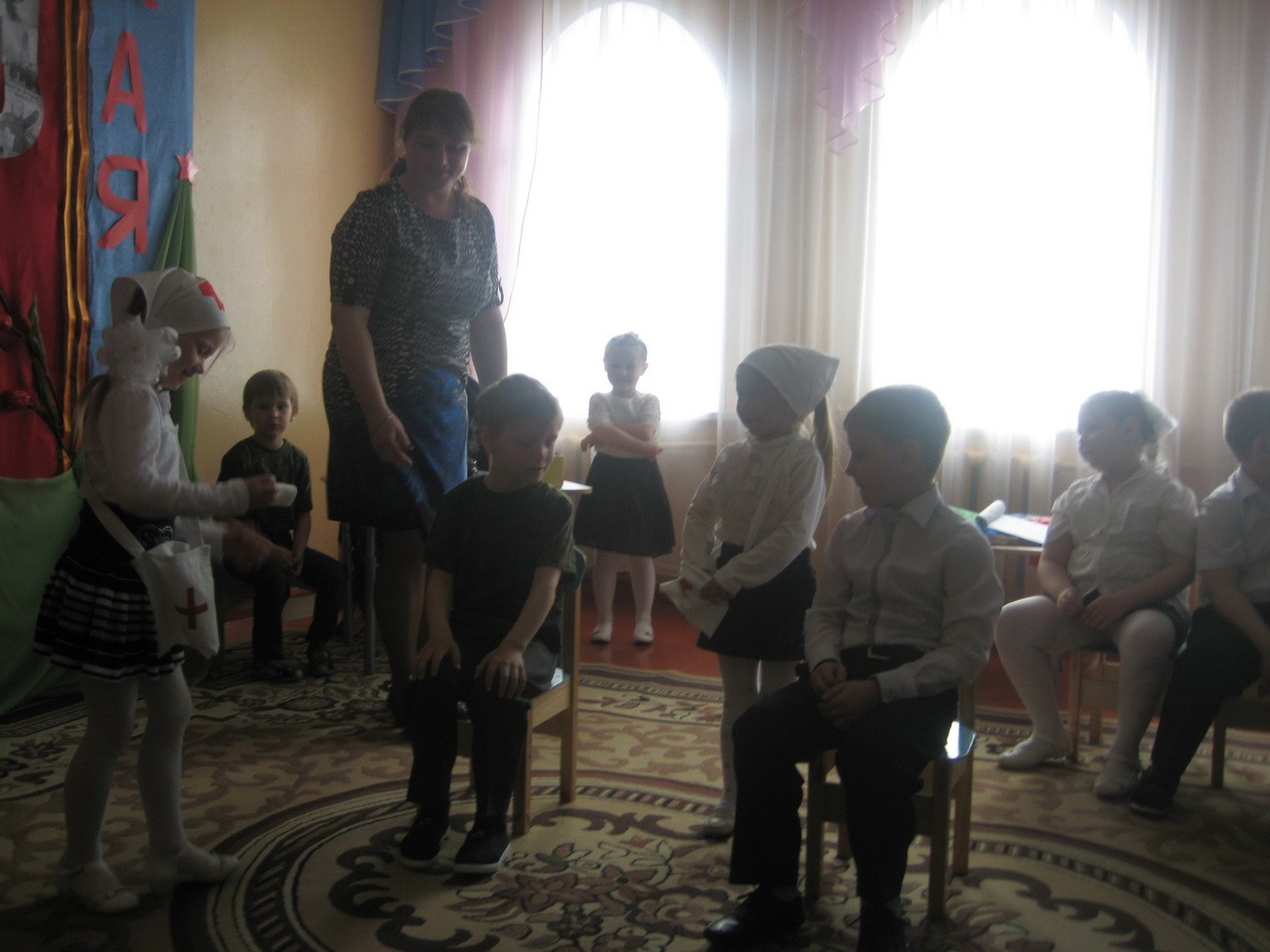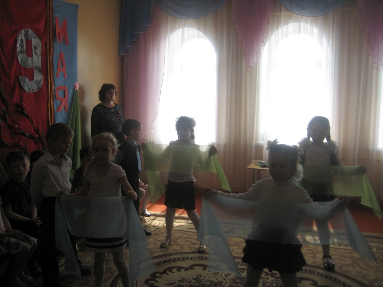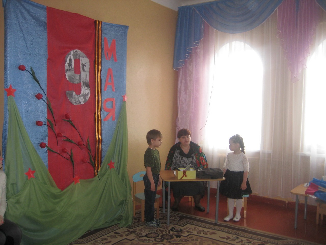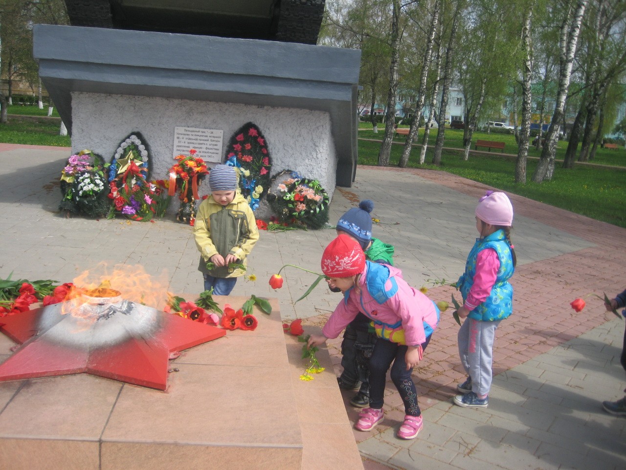 6 мая в детском саду, в старшей и подготовительной к школе группах, прошли праздничные мероприятия, посвященные Дню Победы. Ребята исполнили песни военных лет и о мире, читали стихи, «читали фронтовые письма», исполнили частушки. Мальчики подготовительной группы задорно исполнили танец «Десантники», не было равных девчонкам, исполнивших танец «Морячка». Танец «Синий платочек» перенес присутствующих в те далекие военные годы. В торжественной обстановке старшие дошкольники почтили память своих прадедов. Праздничные мероприятия завершились традиционным возложением цветов к Вечному огню и Стеле героям землякам.
